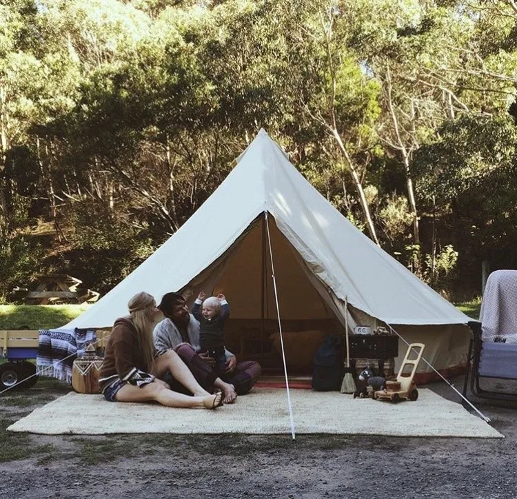 The DANCHEL Outdoors has modified the standard bell tent and designed it to be super functional and durable for camping, whilst maintaining the charm of the traditional bell tent. Our unique design means this tent can erect tightly with no areas for water to gather. We use the toughest, sturdiest and highest-army grade canvas available. Our canvas is waterproof, fire retardant, UV and mould resistant. Our high grade fly screen windows and doors zip close completely allowing you to safely leave your main doors open at night should you wish. Strong steel poles as the center poles and A frame poles at the door.